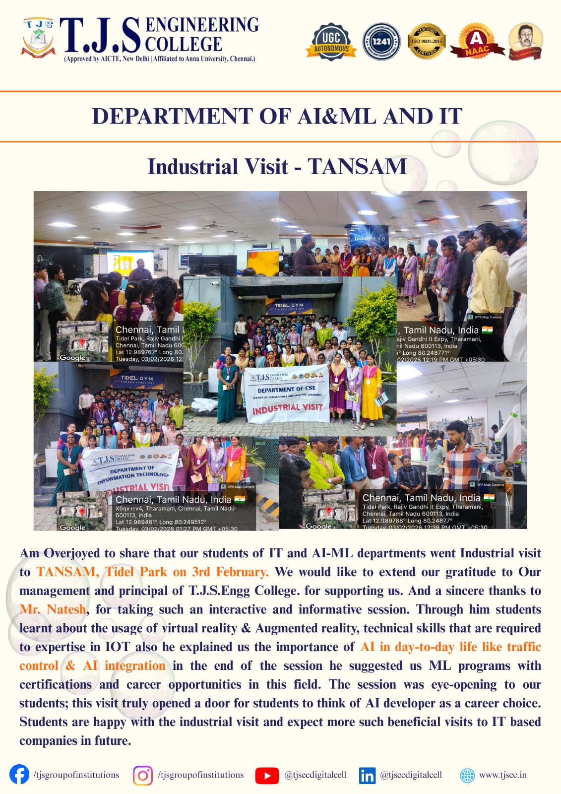 Industrial Visit – TANSAM