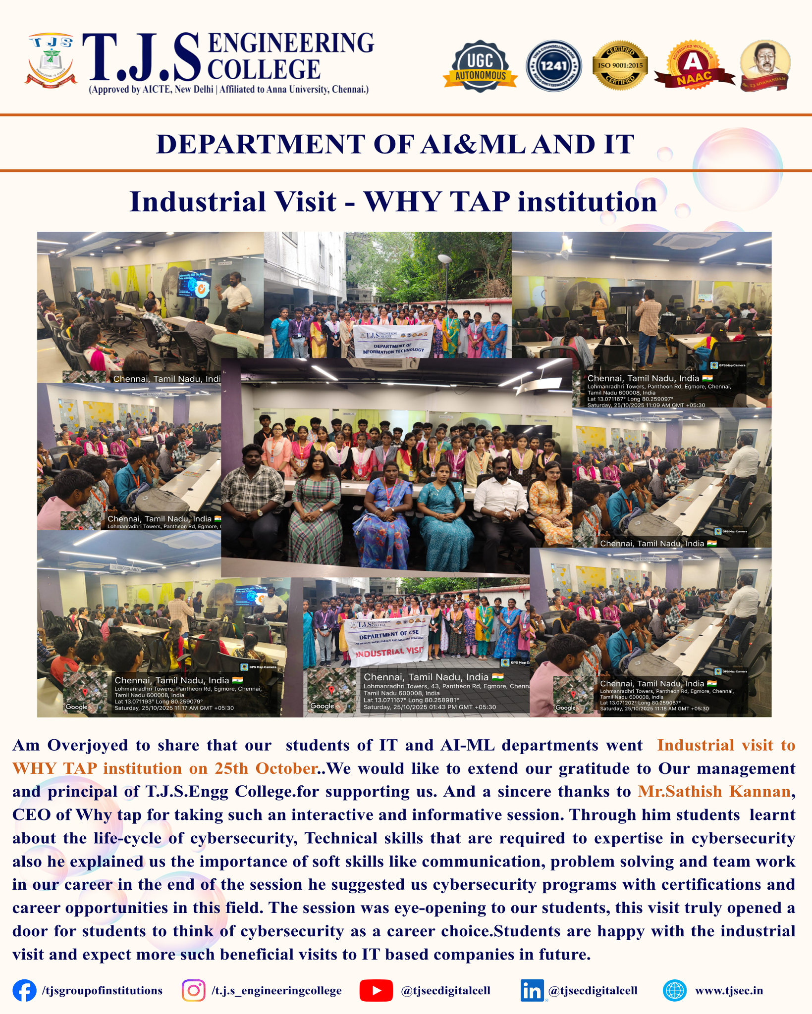 Industrial Visit – WHY TAP Institution